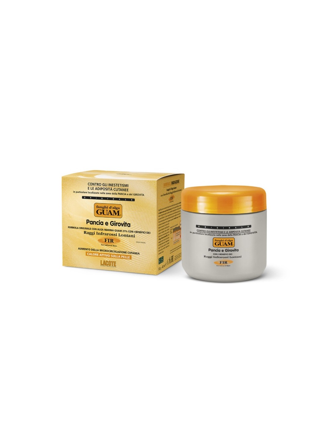 Guam Pancia e Girovita FIR to intensywnie rozgrzewający koncentrat błotny stworzony specjalnie do walki z nadmiarem tkanki tłuszczowej, gromadzącej się na brzuchu i biodrach. Innowacyjny preparat wyszczuplający i antycellulitowy, łączy w sobie siłę działania alg, dalekiej podczerwieni FIR oraz turmalinu. Koncentrat błotny Guam to produkt skutecznie likwidujący pomarańczową skórkę i spalający tkankę tłuszczową.